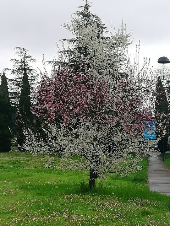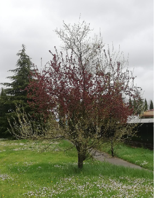 Il s'agit très probablement du résultat d'une greffe. On dirait deux espèces de Pruniers. Un peu comme sur cette photo ou l'on peut voir un poirier avec deux variétés de poires : ![]() Source de la photo et explication de la technique. On peut réussir à mélanger des fruits différents, mais le plus courant, c'est de mélanger différentes variétés d'un même fruit. Le mélange de deux pruniers est un classique : ![]() source de la photo Des passionnés arrivent à faire des mélanger assez fou, comme cet exemple extrême qui comporte 40 fruits différents : This Crazy Tree Grows 40 Kinds of Fruit | National Geographic PPF : ![]()