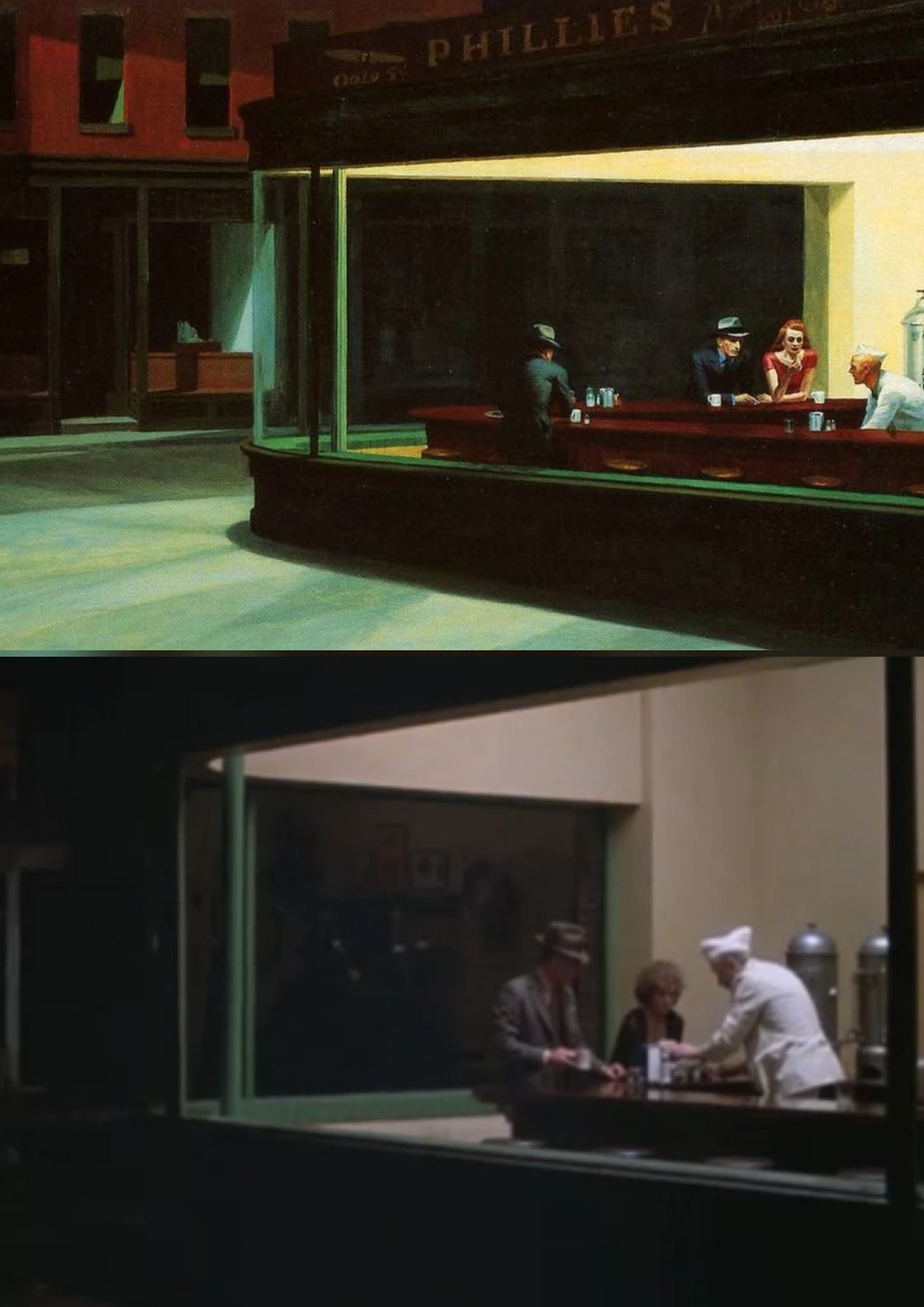 Etonnamment, j'ai déjà eu cette idée il y a quelques mois car j'avais emprunté un livre à la médiathèque qui illustrait justement plusieurs exemples de "Peinture et cinéma". Je pense que les images de ton post sont quasiment toutes présentes dans ce livre. Malgré tout, ça me faisait trop peu de matière pour une vidéo...! PPF : ![]()