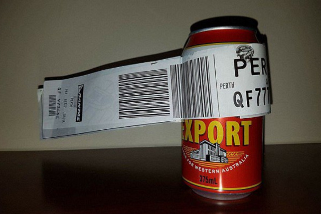 Avant d'embarquer à Melbourne sur le vol QF777 de la compagnie Quantas à destination de Perth, un passager Australien a enregistrer comme bagage en soute un colis un peu particulier ... une canette de bière (via The Sun)