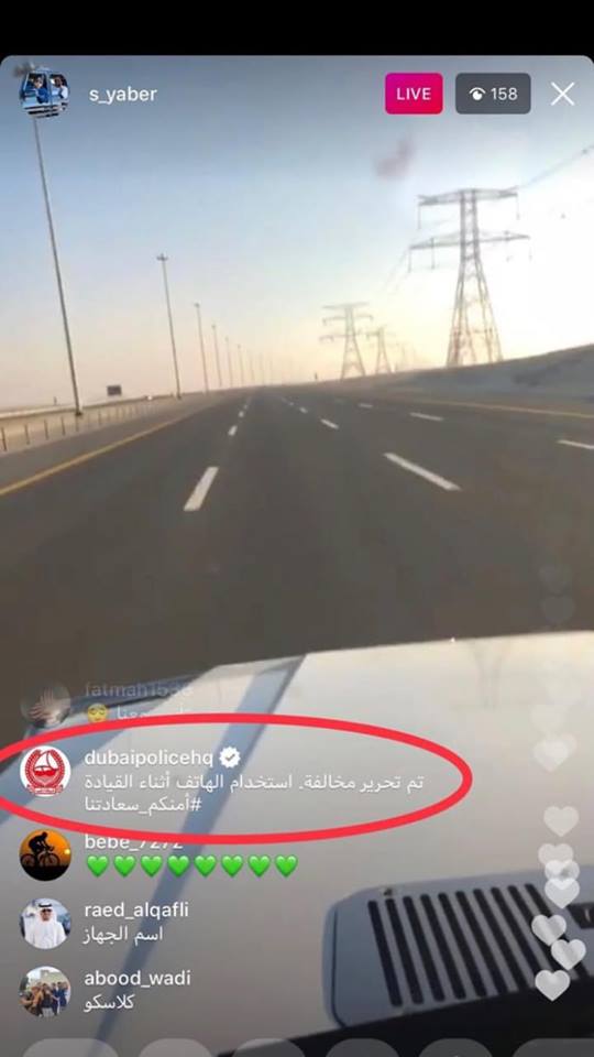 Apparemment la police de Dubai colle des amendes pendant des lives pour "utilisation du téléphone au volant"