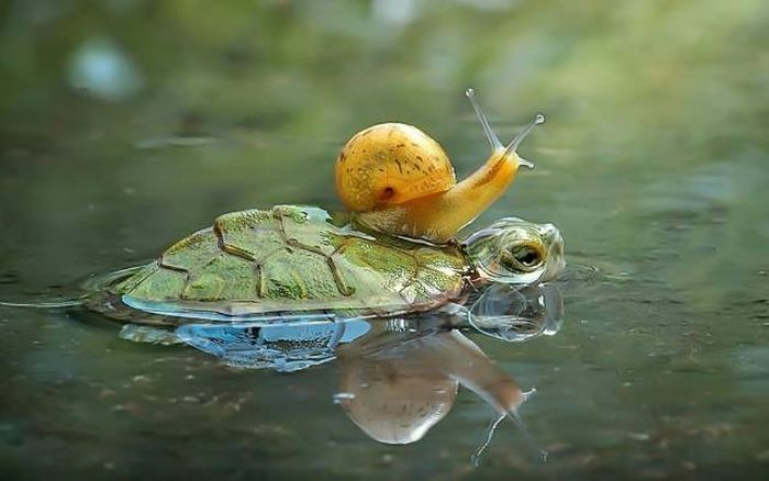 J'aime bien l'idée de l'escargot qui fait du hors bord.