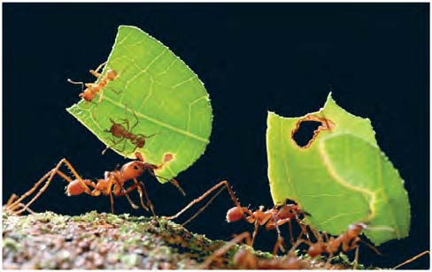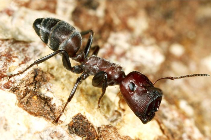 Une fourmi bouche-trou. Dans certaines colonies des fourmis spécialisées servent à boucher l'entrée de la colonie, soit en cas d'attaque, soit pour une espèce dans les mangroves parce que la fourmilière est sous la ligne de marée et qu'il faut boucher les entrées tant qu'elles sont sous l'eau.