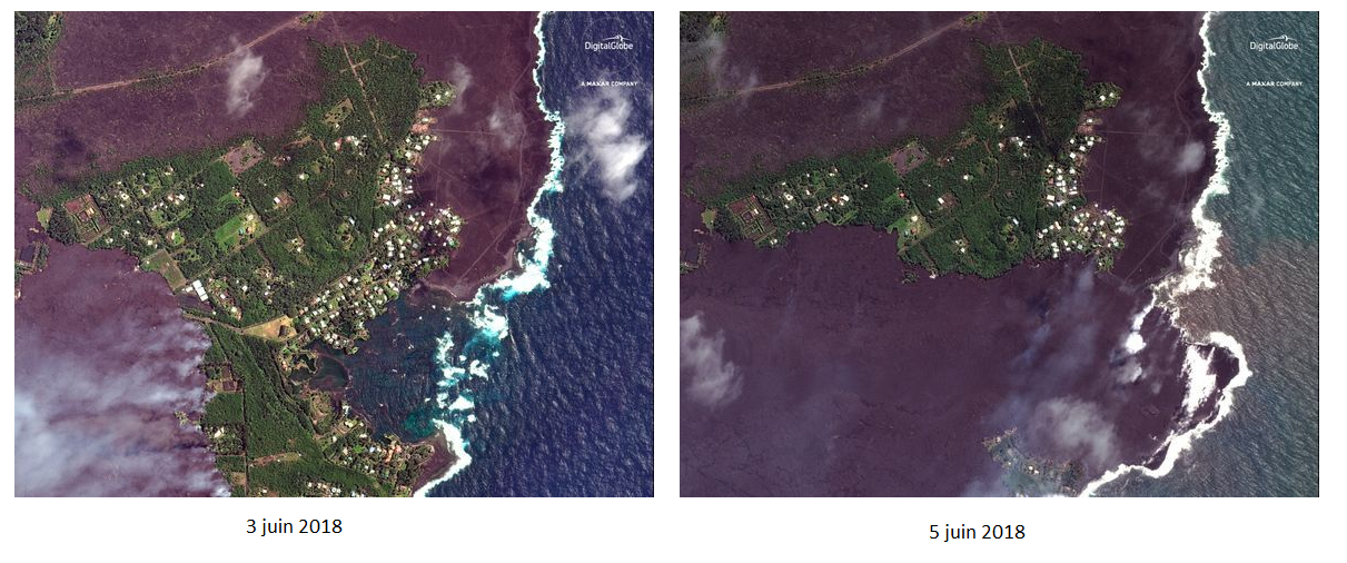 L'avancée de la lave dans la baie de Kapoho. ![]()