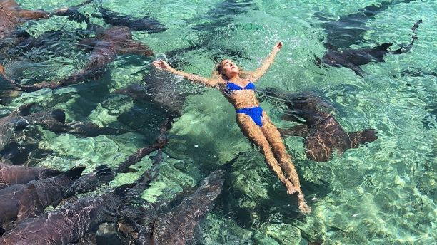 Une idiote de 19 ans... Excusez moi, une étudiante de 19 ans, modèle sur Instagram, va se baigner parmi des requins nourrices. Parce que c'est sans danger.