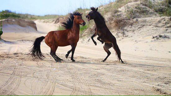 | J'aime glander ici    Inscrit: 04/01/2006 18:09 Post(s): 6904 Karma: 4483 | Un mulet se prend pour un mustang.  Sur l'île de Corola en Caroline du Nord vivent des mustangs sauvages descendant en lignée direct des chevaux amenés par les Espagnols. Parmi les étalons se trouve un mulet. Deux ânes s'étaient enfui et mêlé aux mustangs, Raymond est le dernier descendant. Un étalon d'une vingtaine d'années, il a son groupe de juments qu'il défend farouchement. Il est connu pour son mauvais caractère et sa détermination à protéger ses juments envers et contre tout, même les humains. Etant stérile, il n'a jamais eu de descendance, une façon naturelle de réguler les naissances parmi les mustangs (des 'pilules' font le reste pour les autres groupes).