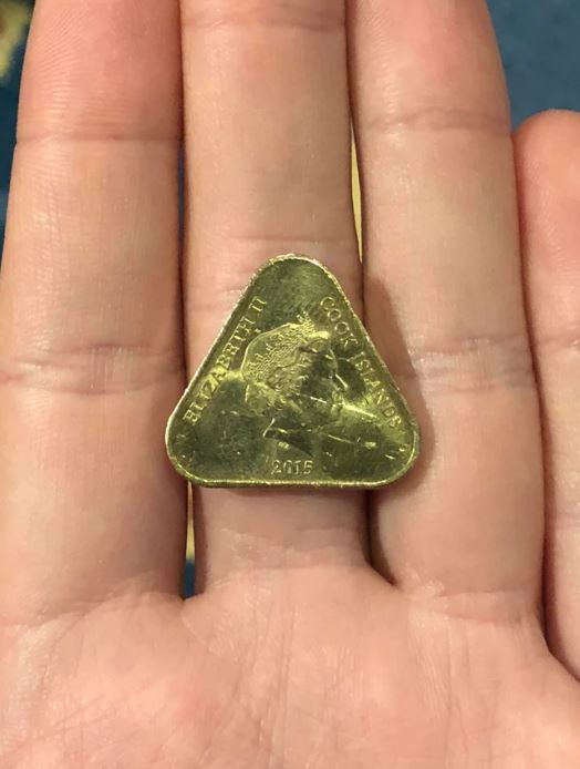 Une pièce de 2$ en forme de triangle de l'ile Cook