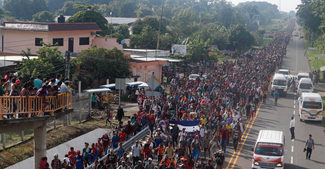 La caravane de 7 000 migrants en qui montent de l'Amérique centrale pour rejoindre les USA