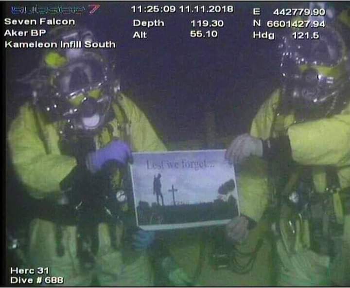 ![]() Même les scaphandriers en saturation comemore la fin de la 1er guerre mondiale. Pour info la profondeur est noté sur l'écran ![]()