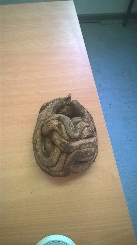 Dans une fosse commune, une racine a poussé dans le crâne d'un squelette et a pris la forme de ce dernier :