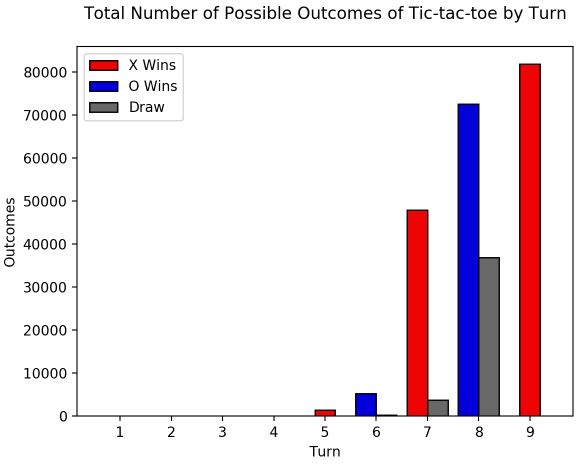 Vos chances de gagner au jeu du moprion ("tic tac toe") en fonction du nombre de tour