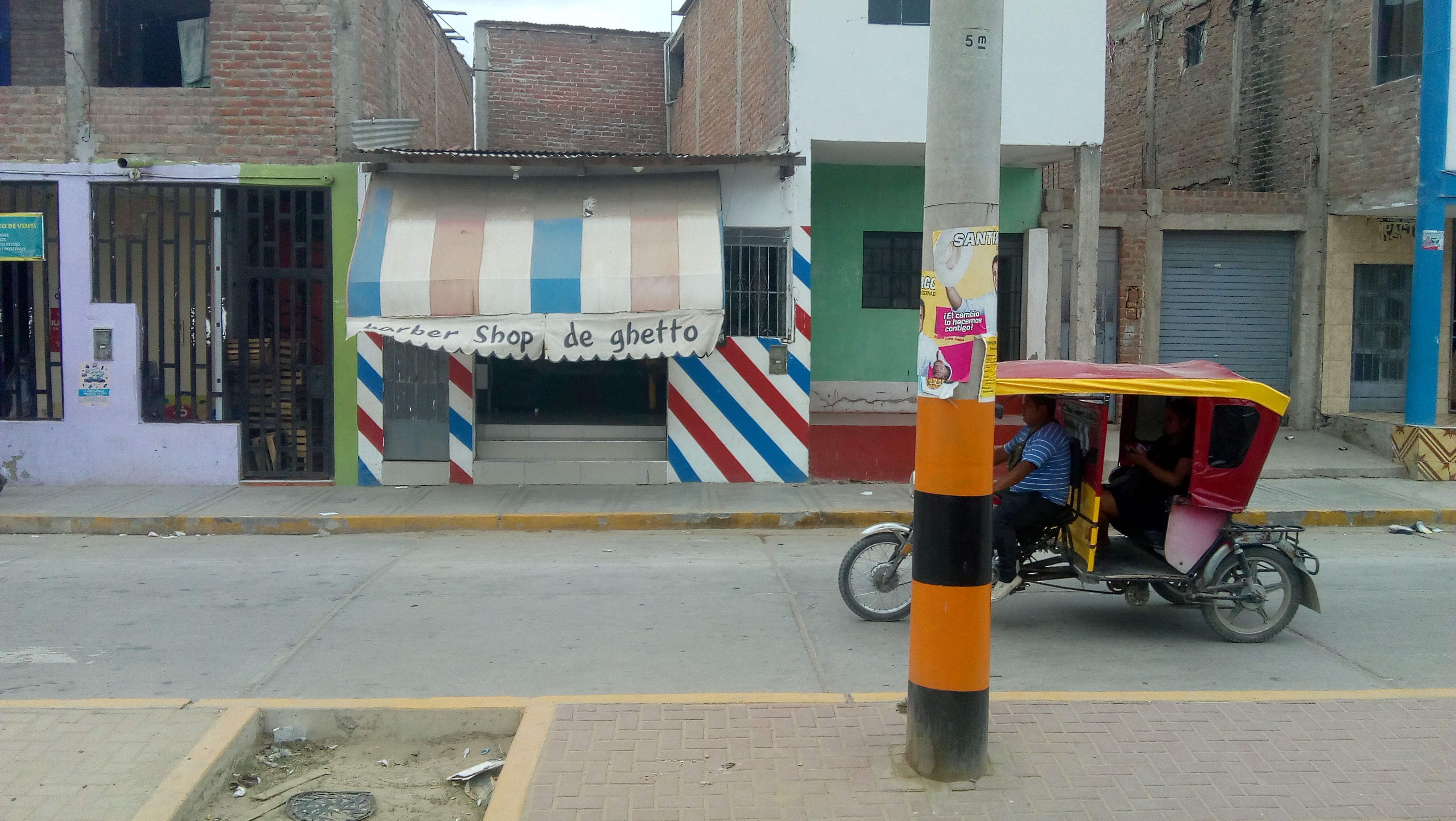 Un salon de coiffure nommé "Barber Shop de Guetto", j'ai trouvé ça drôle ^^ L'enseigne se trouve au nord de Piura, au Pérou. ![]()