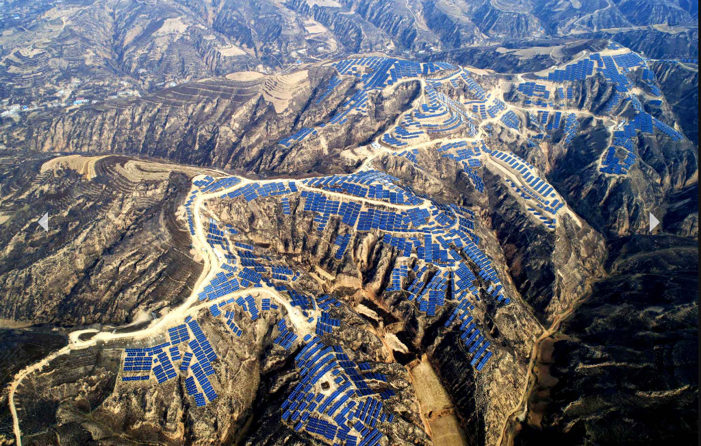![]() Centrale photovoltaïque construite dans le village de Huojiaping, comté de Suide, dans le nord-ouest de la Chine. - LIU XIAO