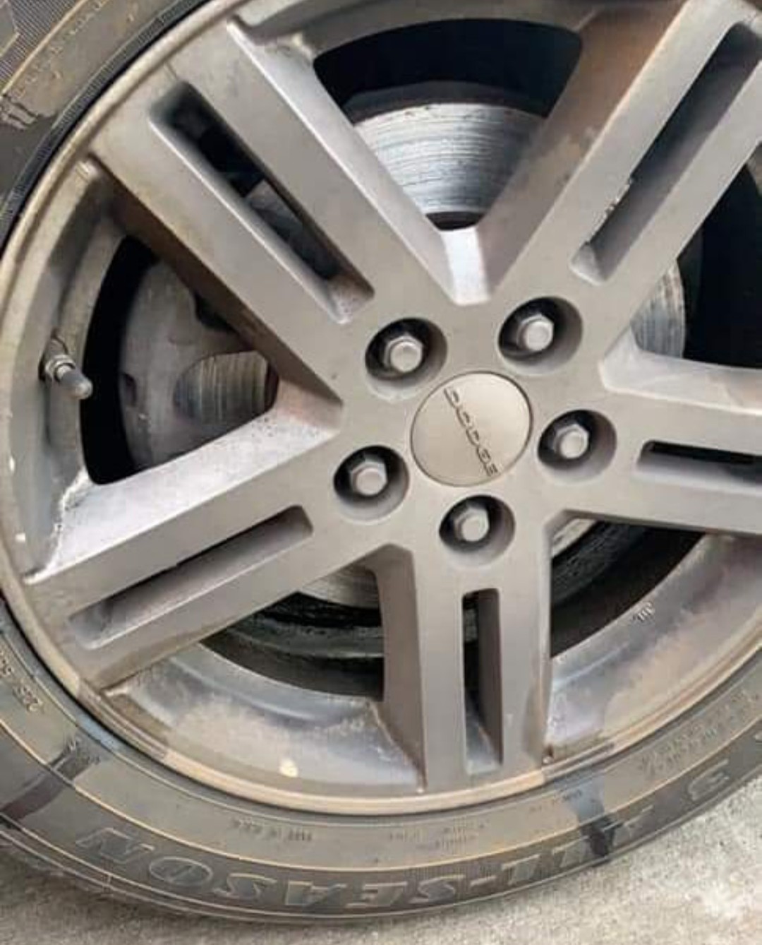 Il manque la plaquette de frein, et vu l'état du disque le gars a roulé comme ça pendant un bon moment