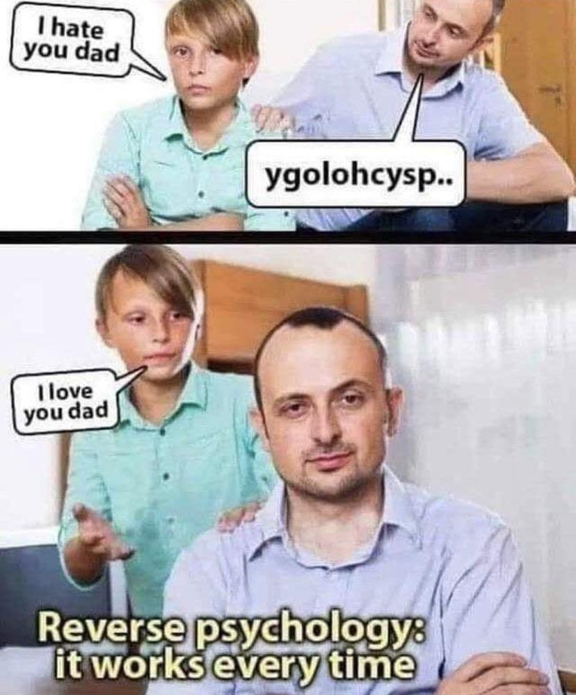 ![]() Que peut vendre un magasin qui s'appelle "racine carrée de anal" ? ![]() ![]() ![]() Fils : Je te déteste papa Père : eigolohcysp Fils : Je t'aime papa Psychologie inversée : ça marche à tous les coups