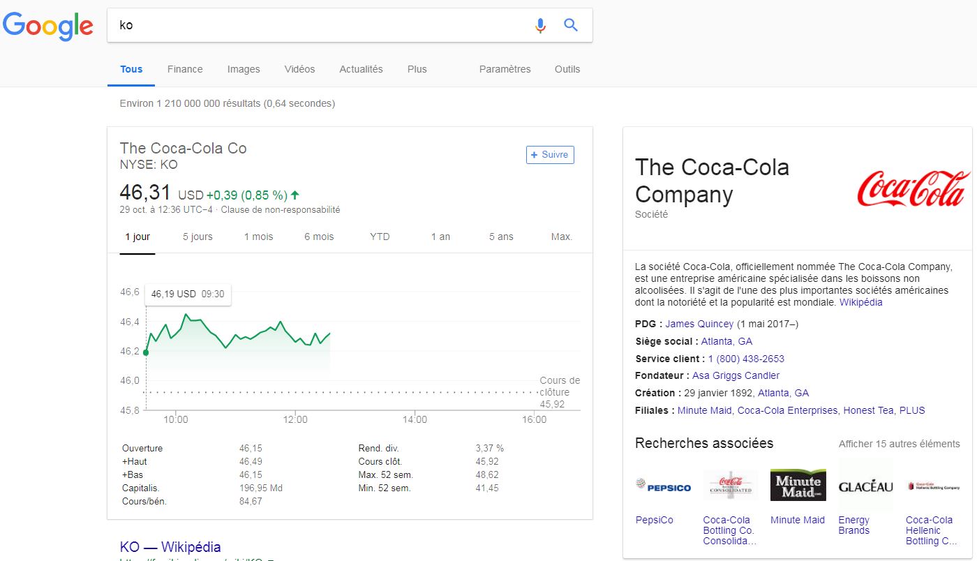 J'aime bien régulièrement tomber sur le cours boursier du titre Coca Cola quand je veux aller sur Koreus