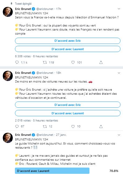 C'est le principe de l'émission de radio. Y a un débat entre 2 mecs. Et à ce moment ils demandent en live aux auditeurs pour voter pour l'un ou l'autre. Là c'était un débat sur un sujet spécifique à un moment donné. Rien à voir avec dictature & médias qui veulent dicter une pensée Ex : la liste de questions live "pour-contre" relatif à chaque émission ![]() Autre exemple : Serait-ce un coup des médias pour détourner le peuple des vrais sujets ? Blague à part, par contre oui BFMTV-RMC c'est marqué politiquement (à droite). Tout comme tous les autres médias sont marqués politiquement. France Inter, Valeurs Actuelles, le Figaro, Le Média, Médiapart, Le Monde, etc etc