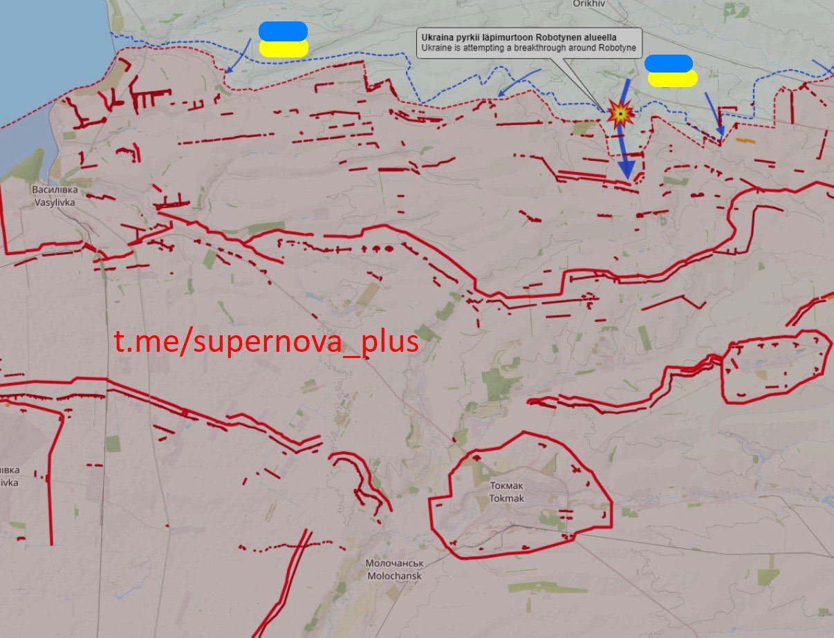 Une estimation des lignes de défenses russes qui font face à l'avancée Ukrainienne au niveau du front de Zaporija (observation aérienne+localisation web)