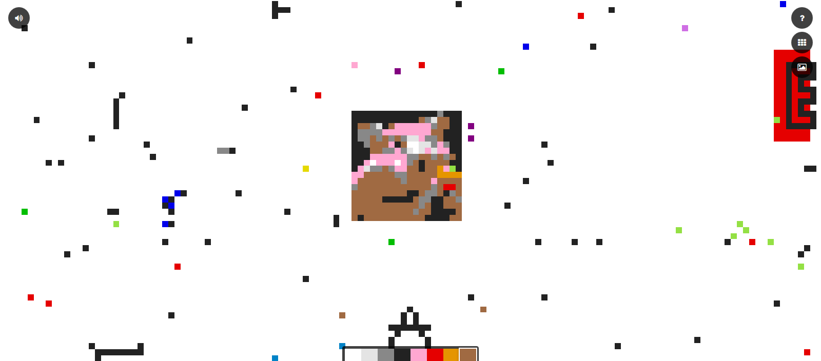 ![]() Normalement en dézoomant vous devriez reconnaître l'avatar de @Koreus : ![]() Par contre avec un clic toutes les 1 minutes 30 ça a quand même prit 8h pour faire une image de 18x18 pixels