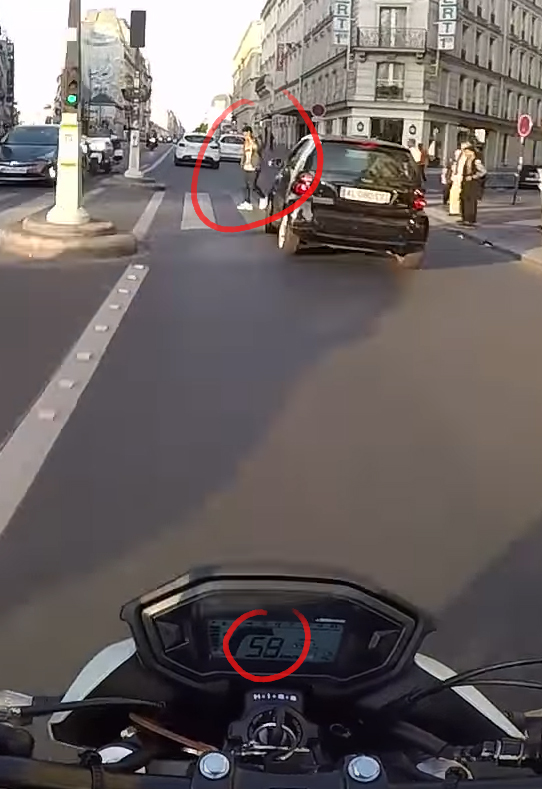![]() A la place du motard je posterais pas la vidéo Même si il est pas entièrement en tort, il roule quand même de façon très imprudente.. A 59 kmh à 20 m d'un feu sans visibilité pour les piétons...