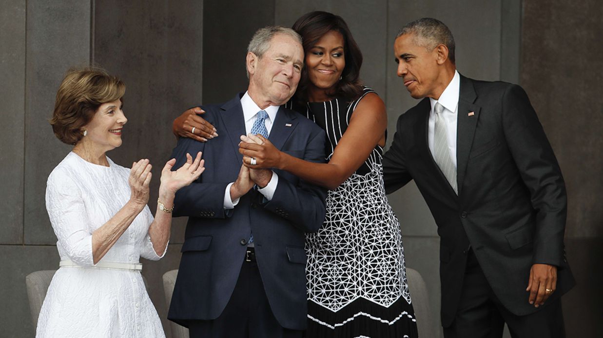 ![]() - Laura Bush : "Ainsi font...font...font..." - George W. Bush : "Les petites ma..." - Michelle Obama : "Hep hep hep, non pas toi !" - Barack Obama : "Hey George, OLIVE !"