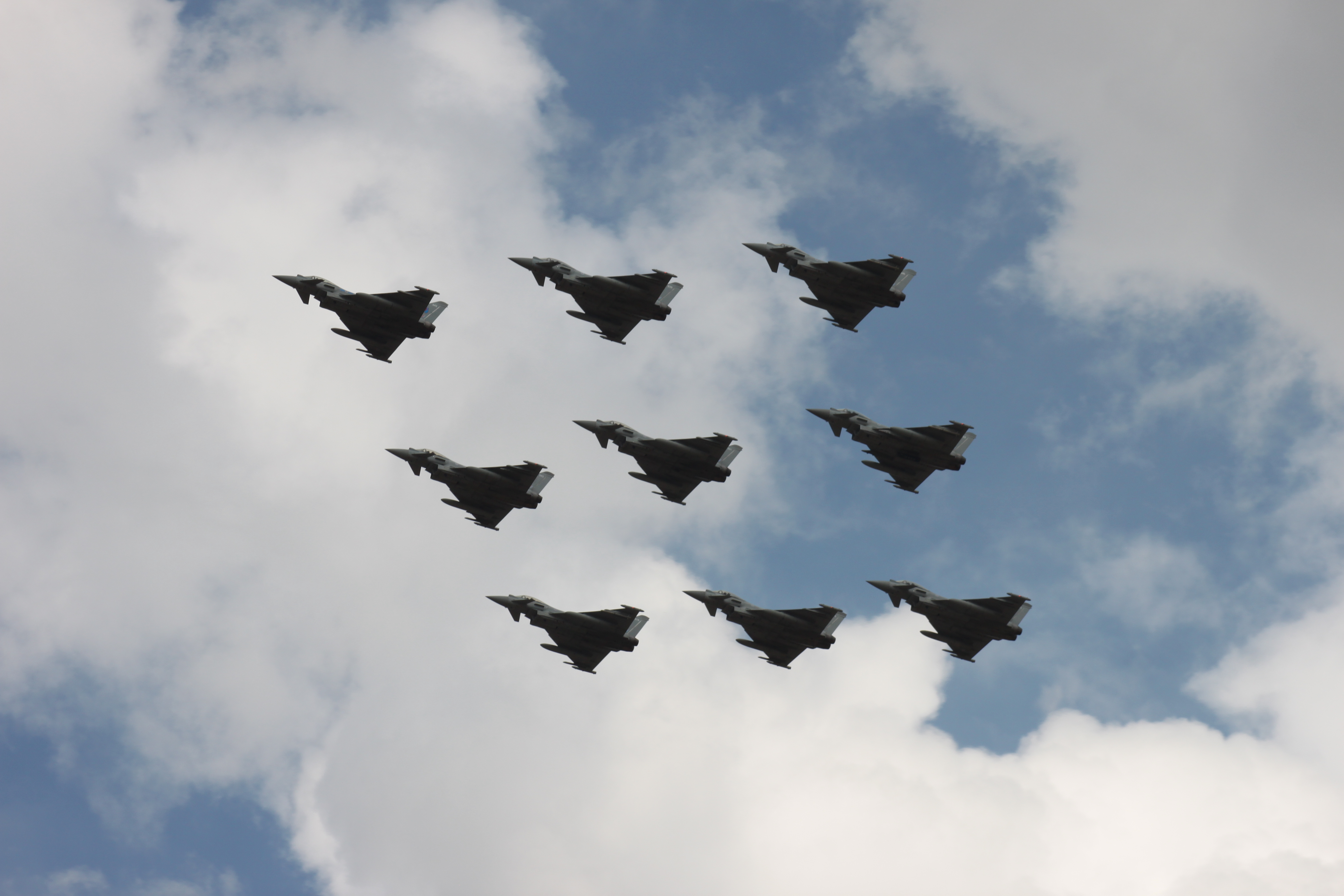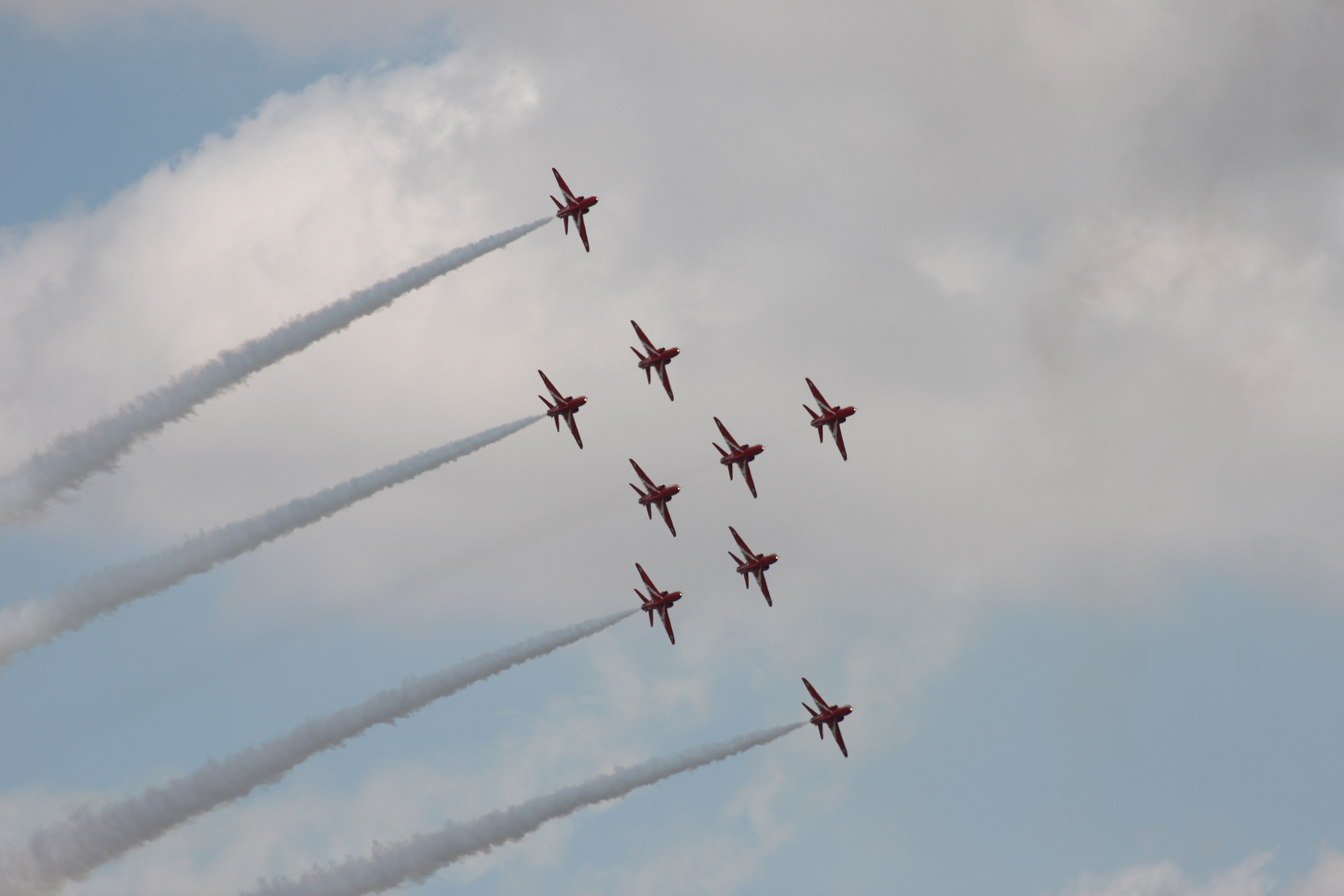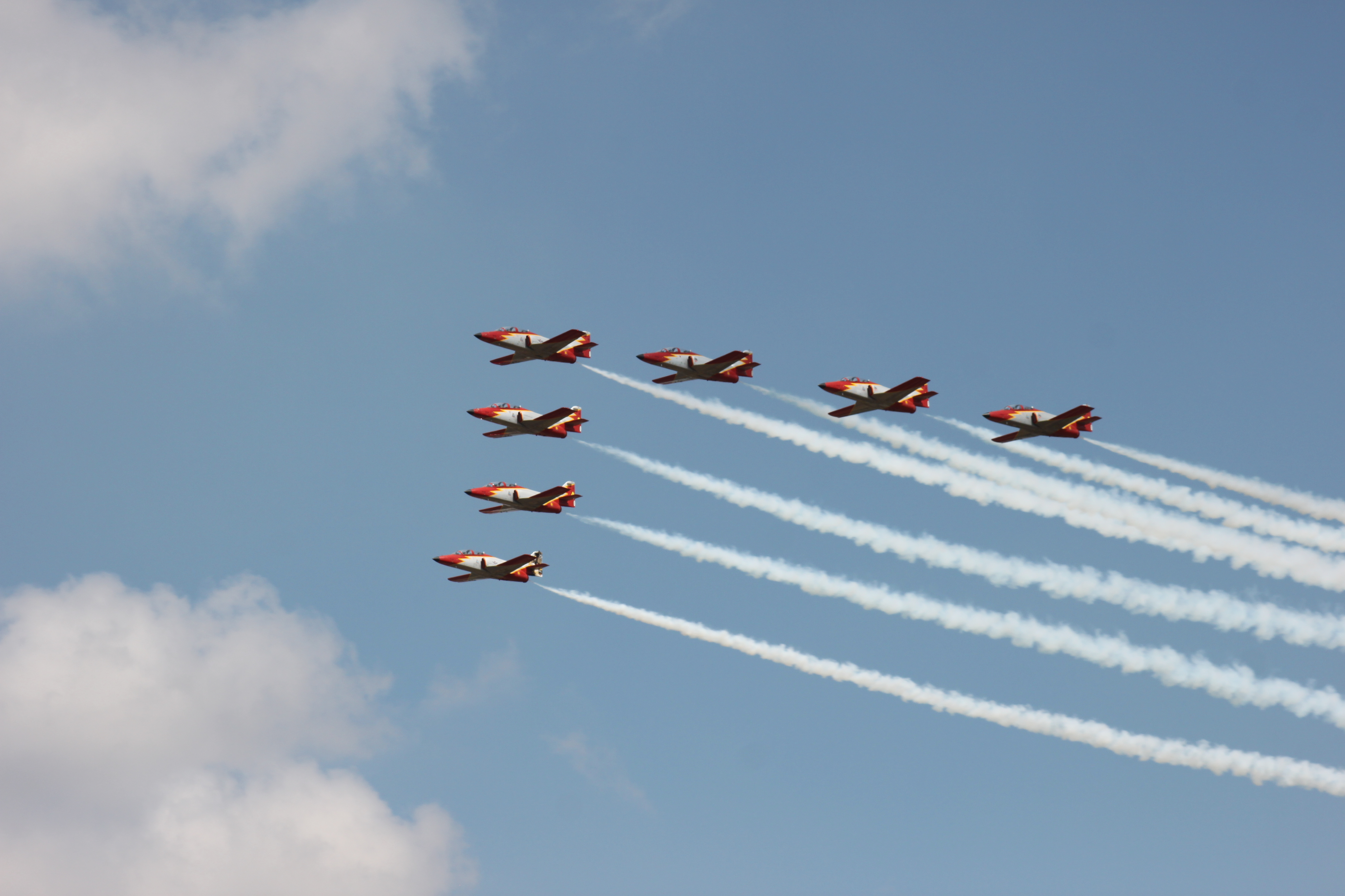 De mon côté, ce samedi, j'étais à Fairford, en Angleterre, pour le Royal International Air Tattoo (R.I.A.T.), un des plus grands meetings aériens au monde, si pas le plus grand. Un petit florilège de show aérien, je passe sur les appareils en statique parce que là, il y en avait encore plus ! On commence par quelques patrouilles... Bon, forcément, on est en Angleterre, on commence par les célébrités locales, les Red Arrows : ![]() On reste avec des Anglais, ce meeting servait également d'anniversaire pour le siècle de la Royal Air Force. Pour l'occasion, formation de 9 Eurofighter : ![]() Pour rester avec ce côté historique, une formation "Bataille d'Angleterre" avec du Spitfire, du Dakota, du Lancaster, etc. : ![]() On part à l'étranger, d'abord en Suisse, avec cette formation composé de la PC-7 Team (patrouille composée de Pilatus PC-7) et d'un F/A-18C : ![]() Un peu plus au sud, avec les Espagnols de la Patrulla Águila : ![]() Enfin, ici, les couleurs ne trompent pas, ce sont bien les Italiens des Frecce Tricolori qui, pour le coup, portent bien leur nom : ![]()