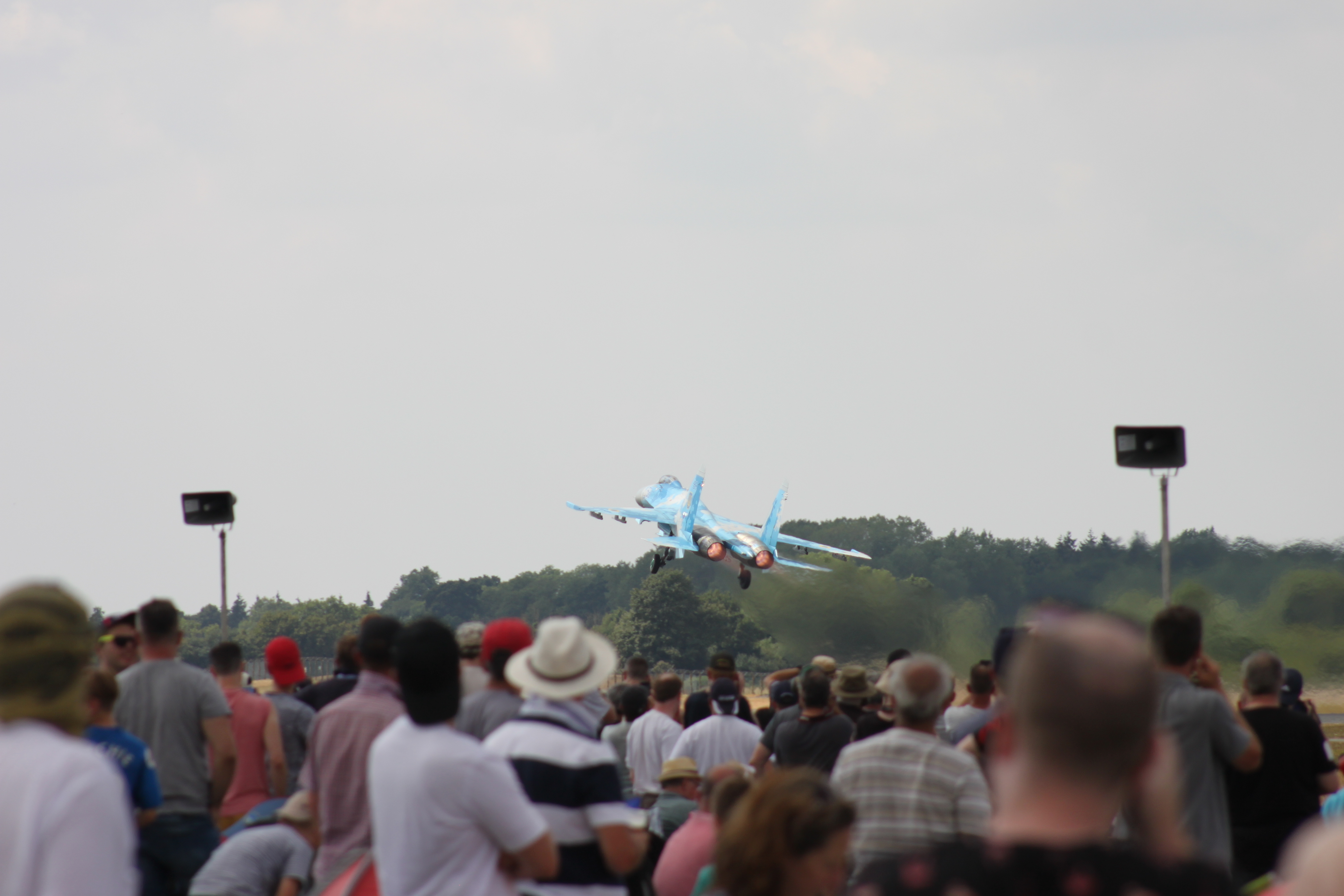 Je commence naturellement par le solo du F-16 de la Force Aérienne Belge, qui volait justement pendant que les Diables Rouges étaient en train de s'occuper des Three Lions : ![]() Il est un peu loin donc, un peu flou, mais ce F-35 est en train de faire un vol en stationnaire, assez impressionnant aussi : ![]() Lorsqu'il est repassé plus près de moi après son vol en stationnaire, la tuyère de son réacteur était seulement en train de se remettre dans la bonne position : ![]() Décollage d'un Sukhoï Su-27 ukrainien, un avion incroyable également (sorry pour les têtes qui dépassent...) : ![]() Autre décollage toujours impressionnant, celui de l'A400M (pour ceux qui veulent voir, voici la vidéo passée dans la CdL du R.I.A.T. 2017, j'y étais également ![]() Et le meilleur pour la fin (seuls les mordus d'aviation peuvent me comprendre), survol (il ne fera qu'un seul passage, fallait pas être aux chiottes ![]() C'est un bref résumé, j'ai pas loin de 1000 photos. J'en profite également pour poser une questions aux autres amateurs de photos du forum : c'est possible qu'un objectif "fatigue" ? Je m'explique, mon 75-300 mm a de plus en plus de mal avec la mise au point automatique. Autant vous dire que pour choper des avions en vol, il galère vraiment. Je suis obligé de passer en manuel mais forcément, c'est beaucoup moins net, surtout pour photographier des objets en mouvement comme des avions. Ca se voit bien malheureusement sur la photo de l'A400M. Y a quelque chose à faire, à régler, à nettoyer, à changer ? Merci d'avance !