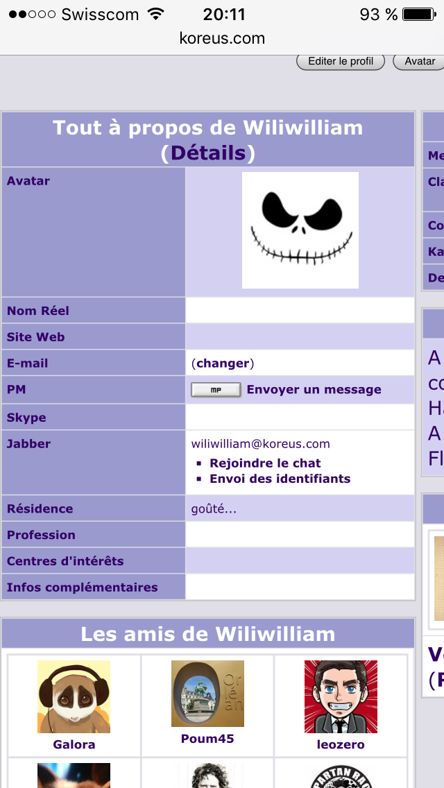 Je le sais mais je n'ai pas de moyen de le voir sur mon profil, même dans la page https://www.koreus.com/edituser.php