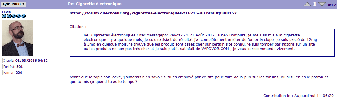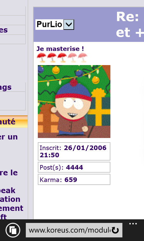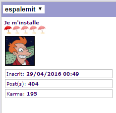 ![]() @Insert : et ça, on fait comment ?? J'ai bien noté qu'il fallait moins de 10 posts entre son rang et le moment où l'on poste ici. En l’occurrence, son rang date de janvier, mais il n'a pas posté depuis...
