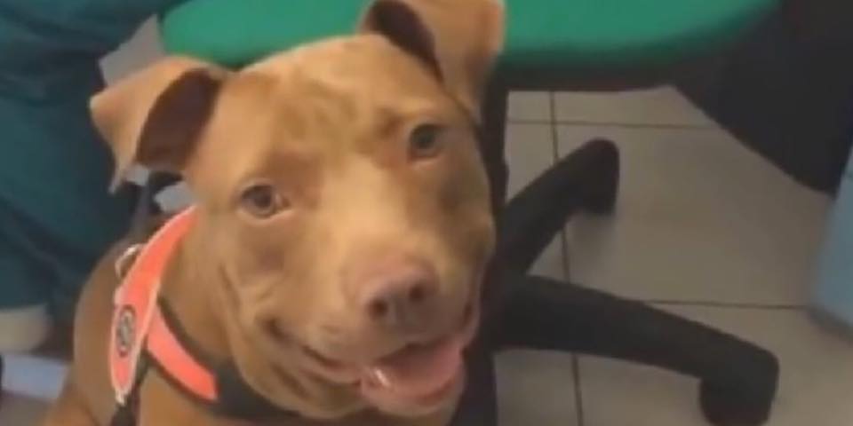 Pitbull avec tête gonflée sauvée après abus d'un collier extra serré