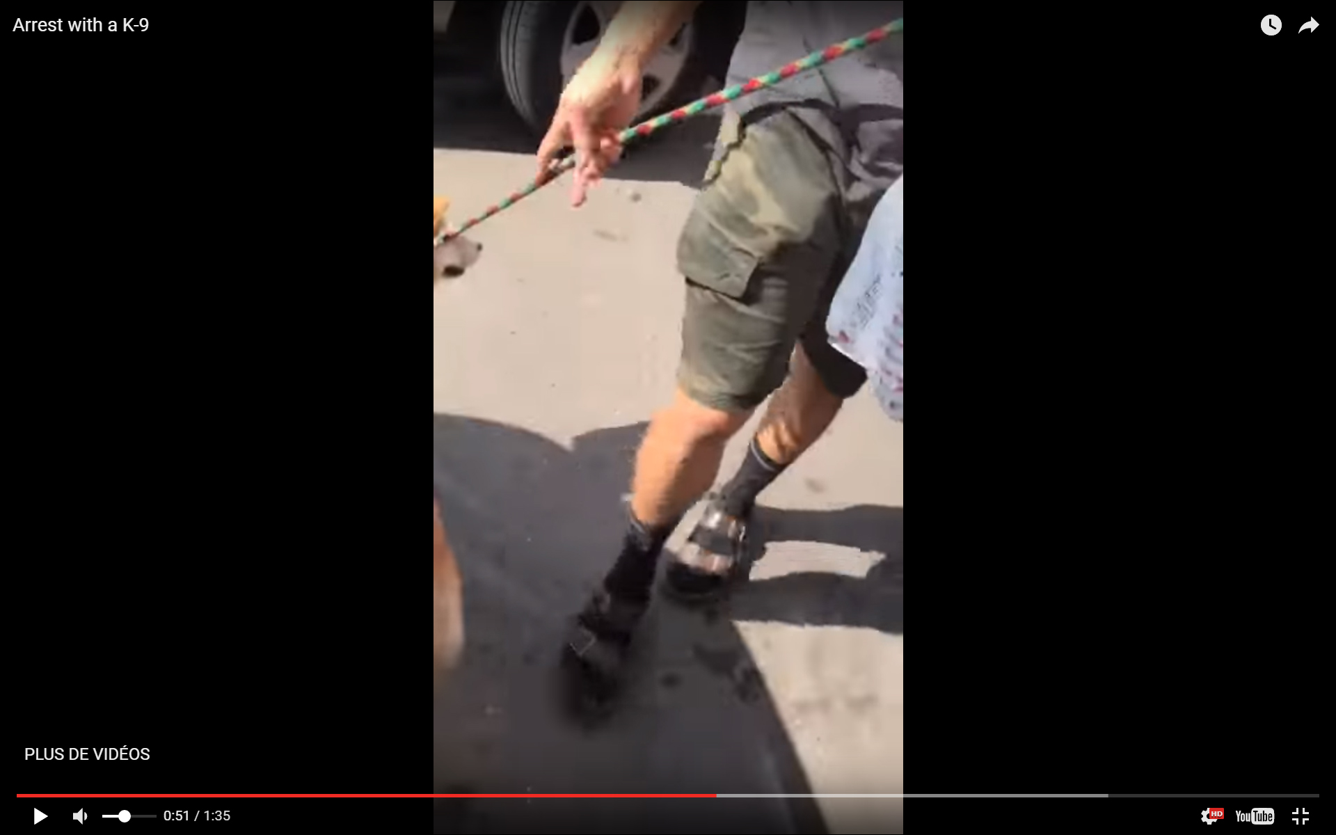 La vidéo est en article : Un chien policier ne veut pas lâcher prise pendant une arrestation (San Diego)