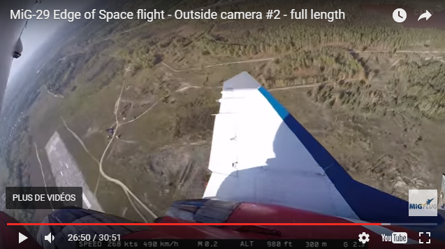le pilote demande souvent à la personne avec lui si il va bien. j'ai l'impression que c'est un truc de l'armée russe pour touristes. MiG-29 Edge of Space flight - Outside camera #2 - full length