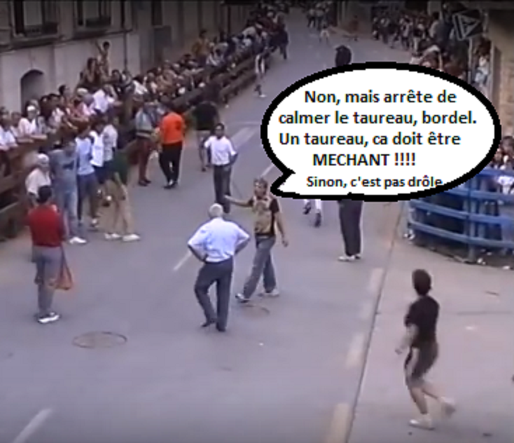 La réaction du taureau devant ce monsieur, prétendument couillu, ne m'étonne même pas.