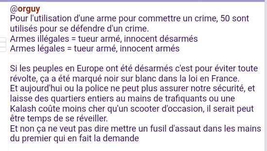 pour les armes semi auto, je parlais des semi auto legales qu'on peut facilement mettre en auto (les armes utilisé la sont des auto, en gros tout le monde peut in fine en avoir).