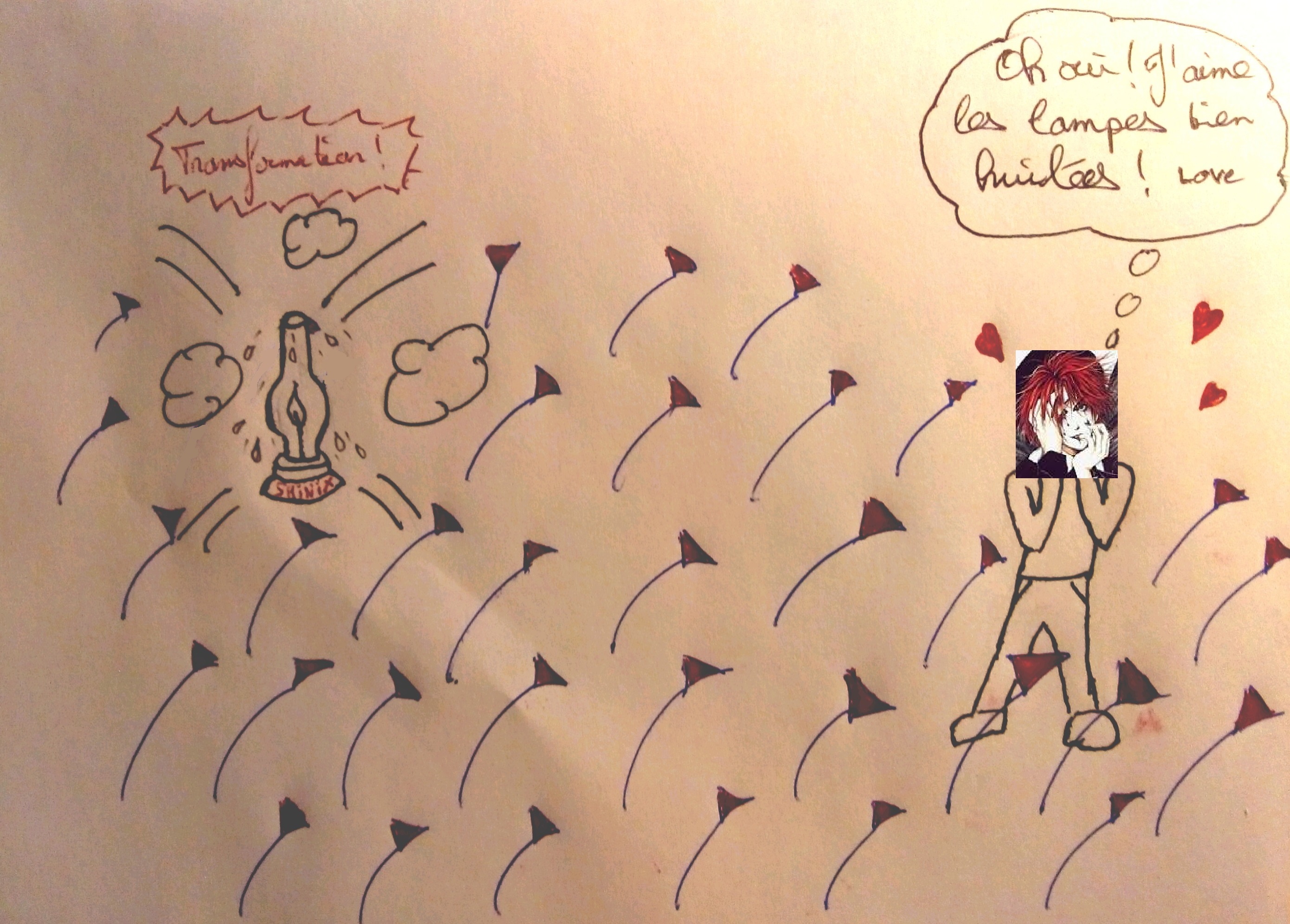 J'avais essayé de dessiner la tête de -ChapelierFou- mais franchement c'était trop hard.^^@shinix se transforme en une lampe à l’huile pour plaire à @-ChapelierFou- dans un champ de downvotes. ![]() - Défi réalisé le 29-07-2020 par Avaruus - Sinon il est très rigolo ce sujet, ce sera un régal de le suivre si d'autres font des dessins !