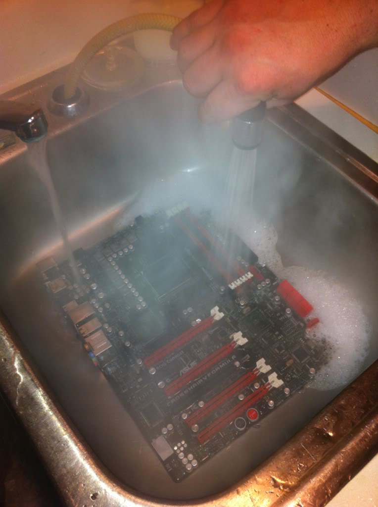 J'aurai jamais imagine lavé sa carte mère avec de l'eau en fait !