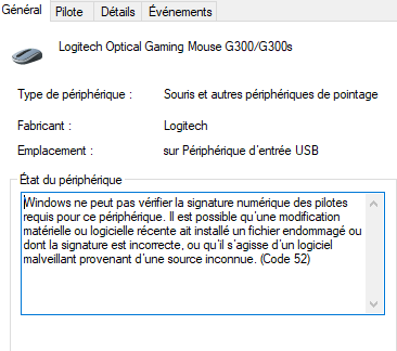 | Thamziks | Problème souris non reconnue ( code 52 ) |