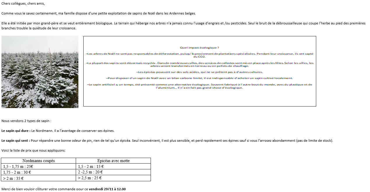 No shame, des gens qui font leur promo de petite entreprise familiale de vente de sapin en passant par le réseau européen.
