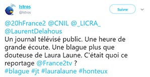 Par contre, je me pose la question, va-t-elle aussi se faire démolir comme TEX ? (qui a fait une blague du même niveau) Dire qu'on a des personnes politiques qui disent largement pire et pas sur le ton de la rigolade et ils sont à peine inquiétés ... Monde de merde
