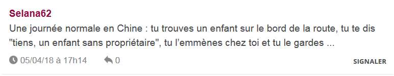@Cedub J'pense qu'ils ont cru a un enfant abandonné, ça ce fait/faisait beaucoup pour les filles en chine