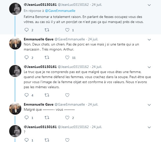 Et encore une fois qui de mieux que les femmes concernées par ce taf pour répondre? Et on voit bien sur la photo que j'ai mis que la nenette n'est pas la pour créer une équité mais bien que l'homme soit soumis et que la femme soit au dessus de lui! Elle qui claque le cul d'un Chipeldance c'est tout a fait normal et non dégradant et clairement ça ne l'est pas mais alors qu'elle arrête de mettre au rang de femme objet des nenettes qui sont assez grandes pour l'ouvrir elles mêmes et qui ont un taf que nombre de gonzesses aimeraient bien avoir, qui est payé très cher pour peu de temps de taf et qui leur permettent d'avoir des contacts avec du gratin! Leur taf n'est pas de se faire tripoter le cul et de les rabaisser mais de montrer leur plastique avantageuse qu'elles ne manqueront pas de montrer hors taf et basta! Donc oui que ces féministes se mêlent de leur cul et s'attaque a des choses ou les femmes sont réellement soumises, font des choses contre leur gré et non par plaisir! C'est quoi la phase suivante? Toutes voilées afin qu'elles ne soient pas embauchées pour le plastique mais pour ce qu'elles ont dans la tête? Ah ok wouais.... Mais ont voit des coms dans le post de la jeune fille qui dit de se mêler de son cul qui lui disent a elle même qu'elle n'a pas mot a dire! La! Il y a contrainte et en plus pour l'empêcher pour faire son taf qu'elle dit fortement apprécier! Je tente de retrouver le com et j'édit... Edit: ![]() C'est quand même fort! On lui dit a son tour de se mêler de son cul alors que la femme se défend de choses dégradantes portées a son encontre. Donc elle doit fermer sa gueule parce qu'une autre femme a décidé que son taf était dégradant! Elle n'a pas mot a dire! Et ça, ça te convient???