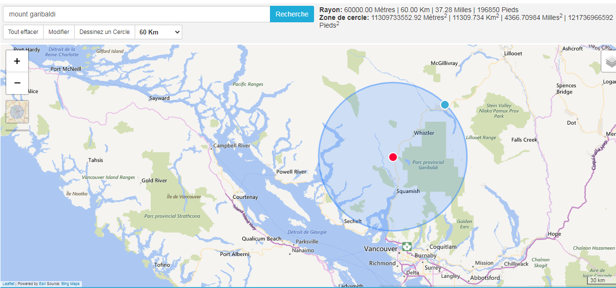 ![]() pour le moment je me dit: - que l'on est au canada -que la ville est à 50/60km d'un volcan avec cette apparence ![]() du coup je me dit que le mont kalgary ressemble pas mal: ![]() j'ai fait un cercle de 60km autour et ça me donne ça. ![]() Pour le moment se n'est pas tres brillant ^^