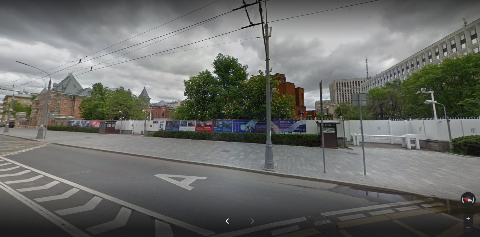 Les poteaux du tramway m'ont mis sur la voie pour la ville, le logo RF, l'enceinte sécurisée et les drapeaux pour l'ambassade Relance ![]()