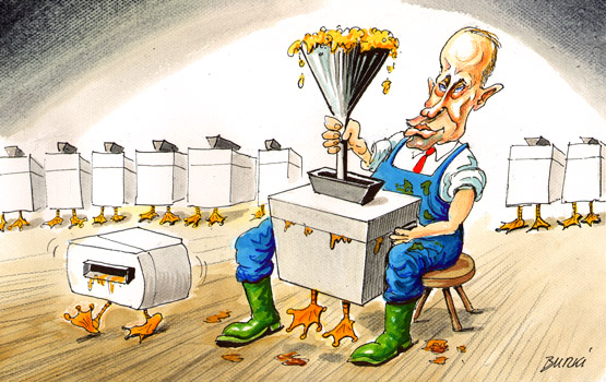 - Mais il n'y a que 150 millions d'habitants en Russie ! - Wouah un taux d'abstention de -500%, c'est du jamais vu ; Poutine notre Dieu à tous !