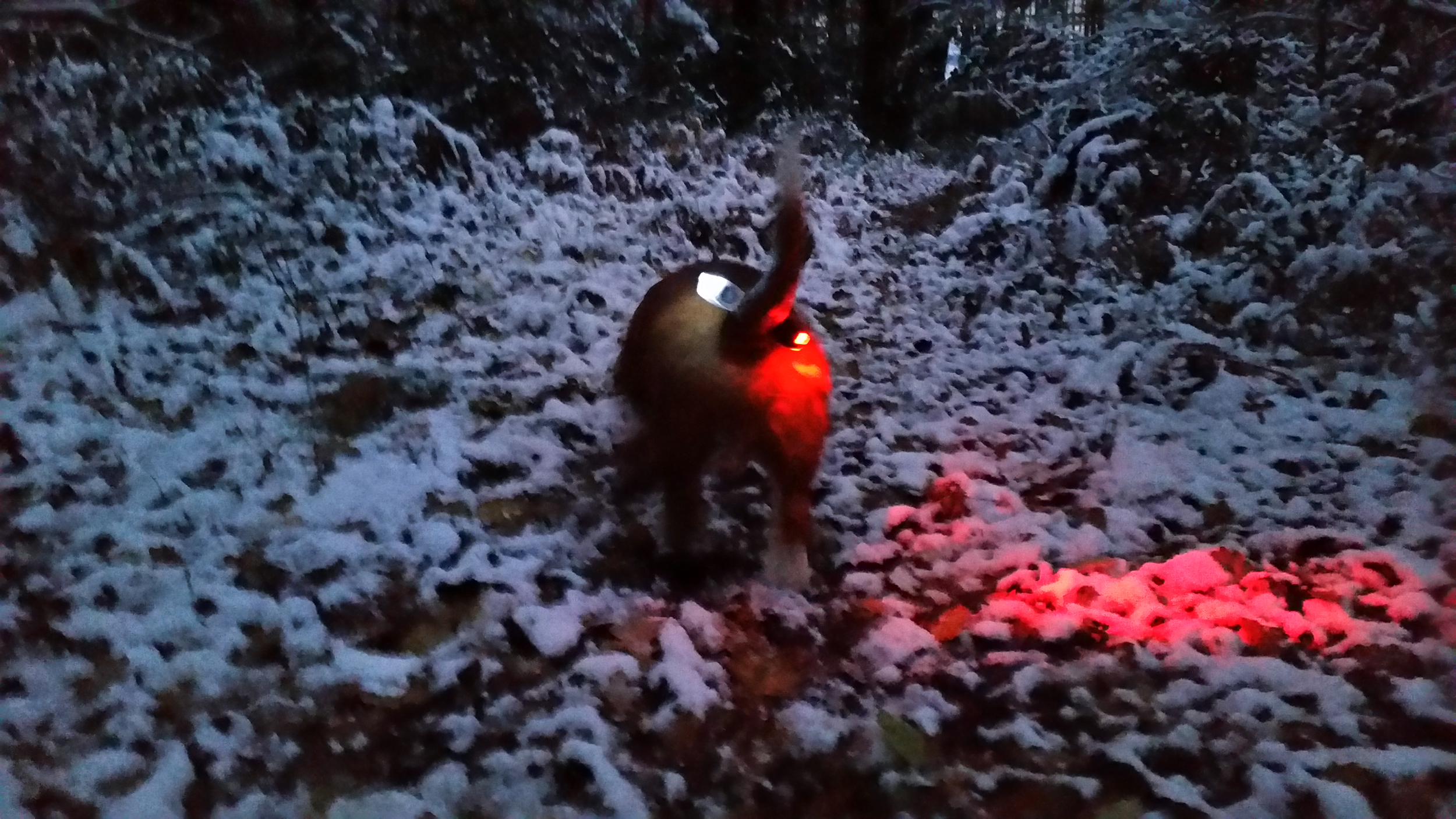 Ca lui a encore sauvé la vie cet hiver alors que j'étais dans un chemin au milieu de nul part, que des phares sont arrivés dans ce même chemin, que je ne m'étais pas rendu compte que le chien était loin derrière moi! Heureusement la voiture a vu les clignotants et s'est arrêtée!