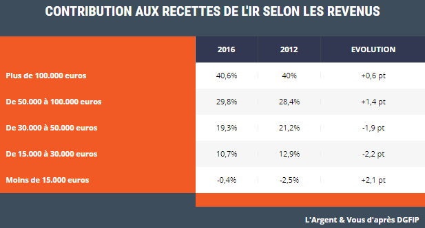 Je ne crois pas, mais t'as raison de le rappeler. Les riches préfèrent certainement etre riche et payer plus d'impot que de vivre avec un faible revenu et pas payer d'impot. C'est sur. Et tout le monde prèfère etre riche. Note que je ne disais pas non plus que les classes les plus pauvres sont contentes et tout va bien Citation : Moi je vois surtout que la richesse est concentré sur quelque uns et que c'est un gros problème de société et que en plus ces quelques uns se plainent d'avoir trop d'impôt ! Le monde à l'envers. Bah comme je t'ai dit, un pays qui est le 2nd plus taxeur au monde (alors pas que via l'impot sur revenu et société mais ausssi TVA qui compte pour une très grosse part (majoritaire je crois meme !), et aussi via taxes sur le foncier, taxes sociales en tout genre etc Mais dans ce contexte, ca me parait tout de meme compréhensibles que les "riches" veulent payer moins d'impot. Et par "riche" c'est pas forcément des rentiers qui bossent pas et ne savent plus quoi faire de leur pognon, mais genre ceux qui gagnent 80 000 euros/an Citation : D'ailleurs ton article fait la remarque: Bien vu effectivement, je n'avais pas relevé ca. Après faut voir en fait. J'ai du mal à comprendre ce que veut dire "restitution" pour etre honnete. Via quoi ? Comment ? Ensuite, selon le tableau, on voit tout de meme que les plus faibles revenus (<15 000/an donc) continuent de ne pas contribuer à l'impot et recevoir une restitution (d'accord avec toi, a priori normal qu'ils ne contribuent pas à ce niveau là) Ensuite, il ne me semble pas que les gens dans la rue en ce moment pour des raisons très variées scandent qu'ils sont la catégorie qui gagnent 15000 euros/an (en tout cas pas le cas des cheminots, etudiants et Air France) et que OK ils ne paient pas d'impot mais la restitution a baissé entre 2012 et 2016. -> Les cheminots lutent pour garder leur régime spécial et le statut de la SNCF -> Les zadistes luttent pour garder le controle de NDDL -> Les étudiants luttent contre la réforme de l'univ -> les pilotes d'Air France luttent pour avoir plus que 2% d'augmentation de leur salaire Citation : Et il faut surtout faire quelque chose contre les grosses entreprises qui payent pas leur impôt Tout à fait d'accord ! ![]()