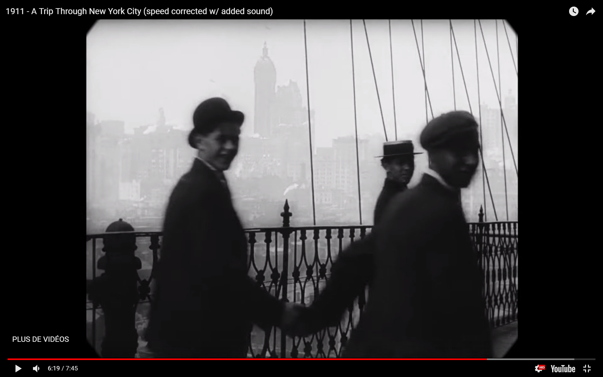 New York en 1911 en vidéo originale (vitesse corrigée et son ajouté par le youtubeur Guy Jones). Les images proviennent d'une petite équipe de suédois (travaillant pour l’entreprise de films Svenska Biografteatern) qui débarquait à New York pour faire des prises de vue de la ville. On voit notamment un tramway parcourant Manhattan, les 1ères voitures qui cotoient les calèches et carrioles, la statue de John Ericsson, une ligne ferroviaire aérienne, le Flariton Building en arrière-plan de la cinquième avenue, ou encore la statue de Liberté.