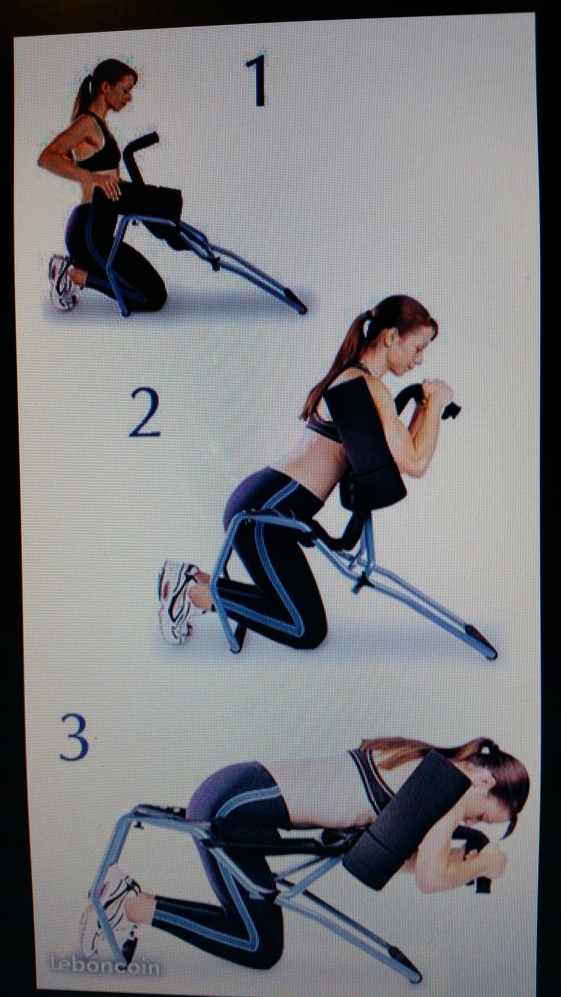 C'est ça qui est paradoxal avec cette machine! Elle sert a étirer les vertèbres et tu te retrouves vite a te les faire tasser ensuite! Quand tu te pends, déjà tes jambes sont droites et te voûtent le dos en arrière et c'est pas bon du tout...De plus, même si tu penses être relâché, tu ne l'es pas du tout et donc tes abdos et tes lombaires t'empêchent de te relâcher complètement car tu te crispes un minimum du fait de te retenir avec les bras...Mon kiné m'a bien dit que certains trucs que je faisais au début en ayant les jambes tendues était au contraire néfaste car en ayant le dos voûter et en t'étirant, tu compresses le disque dans l'autre sens et c'est pas bon non plus.... Pour que l'étirement se fasse correctement il faut que tu sois donc relâché et que ton dos soit bien droit... Pour comprendre le truc, tu t'allonges au sol les jambes tendues...Tu verra que ton dos est voûté.... Maintenant tu plis tes jambes et tu verra que le bas de ton dos plaque bien a plat sur le sol....Tu vas me dire qu'il faut donc se pendre et plier les jambes...Ba non car la tu es forcement contracté et tu n'étires rien du tout...C'est pour ça qu'il est important de demander a des professionnels car des trucs que je pensait bon étaient néfastes...La j'ai eu l'approbation de mon kiné...J'ai eu son approbation pour d'autres trucs mais la il m'a dit de ne surtout pas forcer, d'y aller doucement! Sur ma machine, tu es posé et relâché et c'est le poids du haut de ton corps qui fait que tu t'étires...Mais malgré tout, quand tu crois être complètement relâché tu remarques au bout de quelques secondes que ton fessier a tendance a être contracté un petit peu...Donc il faut vraiment se relâcher, se laisser aller... Pour les étirements au sol ils sont donc complémentaires mais la perso il y a un étirement que mon kiné m'a montré et comme mon nerf est encore enflammé comme le disque le compresse, ça a réveillé l’inflammation.... Je tente de fabriquer d'autres machines ou le principe est le même, étirer la colonne... J'ai vu plus sado masochiste encore comme machine sur leboncoin l'autre fois. Et je vais la faire aussi...Les poutres apparentes dans ma maison en construction le permettent actuellement et je vais donc en profiter... Mais la encore, avant de mettre en train, je demanderai a mon kiné osthéo si c'est ok! J'essaye même de voir comme je suis beaucoup sur l'ordi, un système pour être assis mais en ayant le cul dans le vide pour ne pas se tasser... J'essaye de voir aussi si ce genre de siège n'existe tout simplement pas afin de l'acheter ou comme ma machine nulbax, la reproduire ....