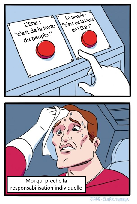 J'ai toujours un doute quant à la rhétorique de "on aurait fait différemment à telle époque, ça serait mieux maintenant". Je pense que l'humain, dans toutes ses contradictions, est tellement axé sur le court terme, lié à son espérance de vie, qu'il sera toujours en mesure de prendre de mauvaises décisions à long terme tant qu'il sait qu'il a de grandes chances de ne pas avoir à subir les conséquences de ses décisions. En gros, si ce n'est pas untel qui aurait fait de la merde, ça aurait été un autre (et oui, personne n'est irremplaçable, même dans la connerie ).Bref, chercher des responsables sachant que ce n'est pas certaines personnes mais bien notre propre civilisation qui a créé cette situation, je trouve ça un peu trop facile. C'est notre manière de vivre qui est la vraie responsable. Et personne ne nous force à utiliser du pétrole, c'est juste que c'est plus facile de faire avec que sans et à bien des niveaux. De la même manière que je ne saurais dire avec certitude comment j'aurais réagi pendant une guerre, une prise d'otage, une occupation, face à un crime, ..., je n'ai pas la prétention que j'aurais agi différemment de mes parents si j'avais vécu à leur époque. Une vérité est que la plupart des gens ne se souciaient pas de ce genre de problématique bien que les informations et les données étaient présentes et même déjà disponibles et partagées. Arrêtons de chercher des responsables spécifiques à la situation à laquelle nous avons contribué (d'ailleurs, nous continuons à y contribuer) et agissons. Le risque est de choisir la facilité: "ce sont eux les coupables, c'est de leur faute donc je ne me remets pas en question". Tout ceci n'est, bien entendu, que mon point de vue personnel.