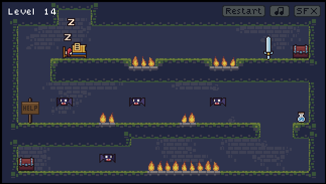 ![]() >>> Jouer à Sleepy Knight <<< Synopsis: Vous incarnez un ch'tit chevalier, blasé de sa condition de sauveur. Dans un monde où les prisonniers sont enfermés dans des coffres et les chauves-souris peuvent vous tuer d'un coup de croc, vous devez littéralement tomber du lit pour sauver les gentils et tuer les méchants. Des panneaux d'aide sont présent dans le jeu pour les plus nuls. Jeu facile et rapide ![]() Comment Jouer: • souris/clavier Genre: #puzzle#game#pixel#chevalier#dodo#zzz Bon jeu!