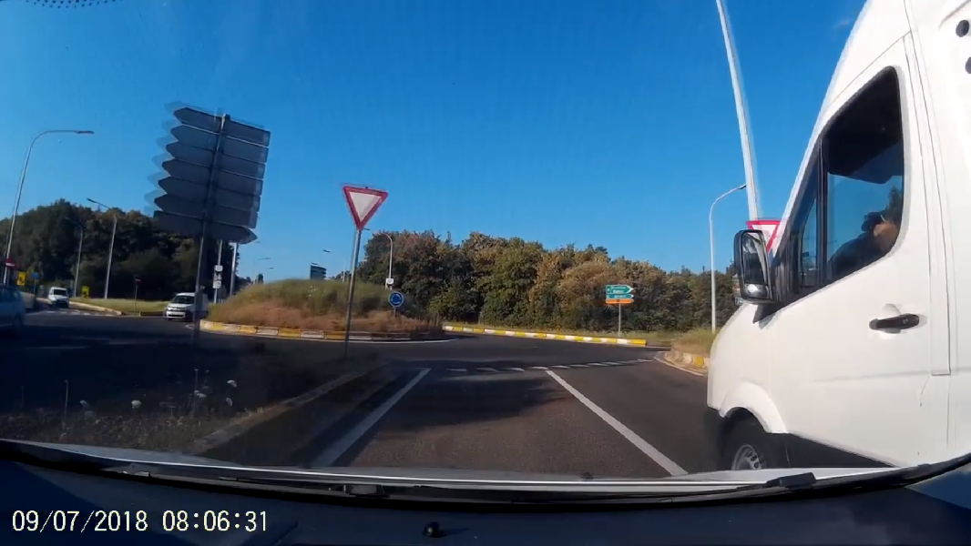 Je te déconseille d'ailleurs de continuer à suivre des cortèges de police vu la qualité de ta conduite et ta propension à être distrait comme au rond-point où tu arrives pleine balle sur la mauvaise voie en manquant de couper la route à une voiture engagée, tu risques de griller un feu devant leurs yeux sans même t'en rendre compte et devenir le dindon de ta propre vidéo.